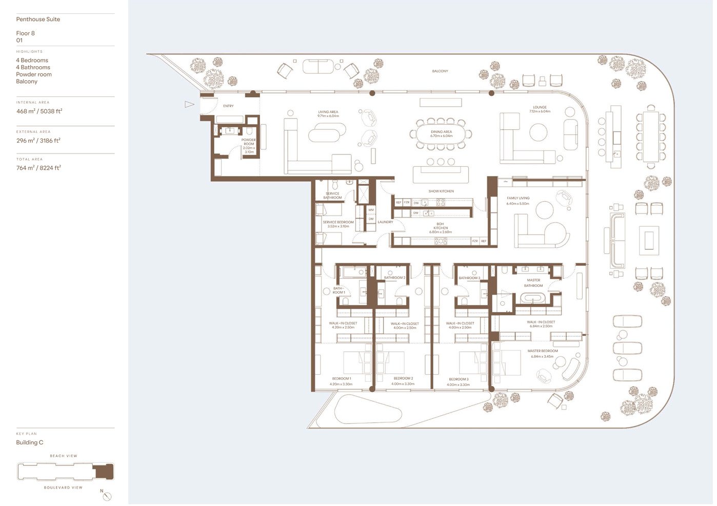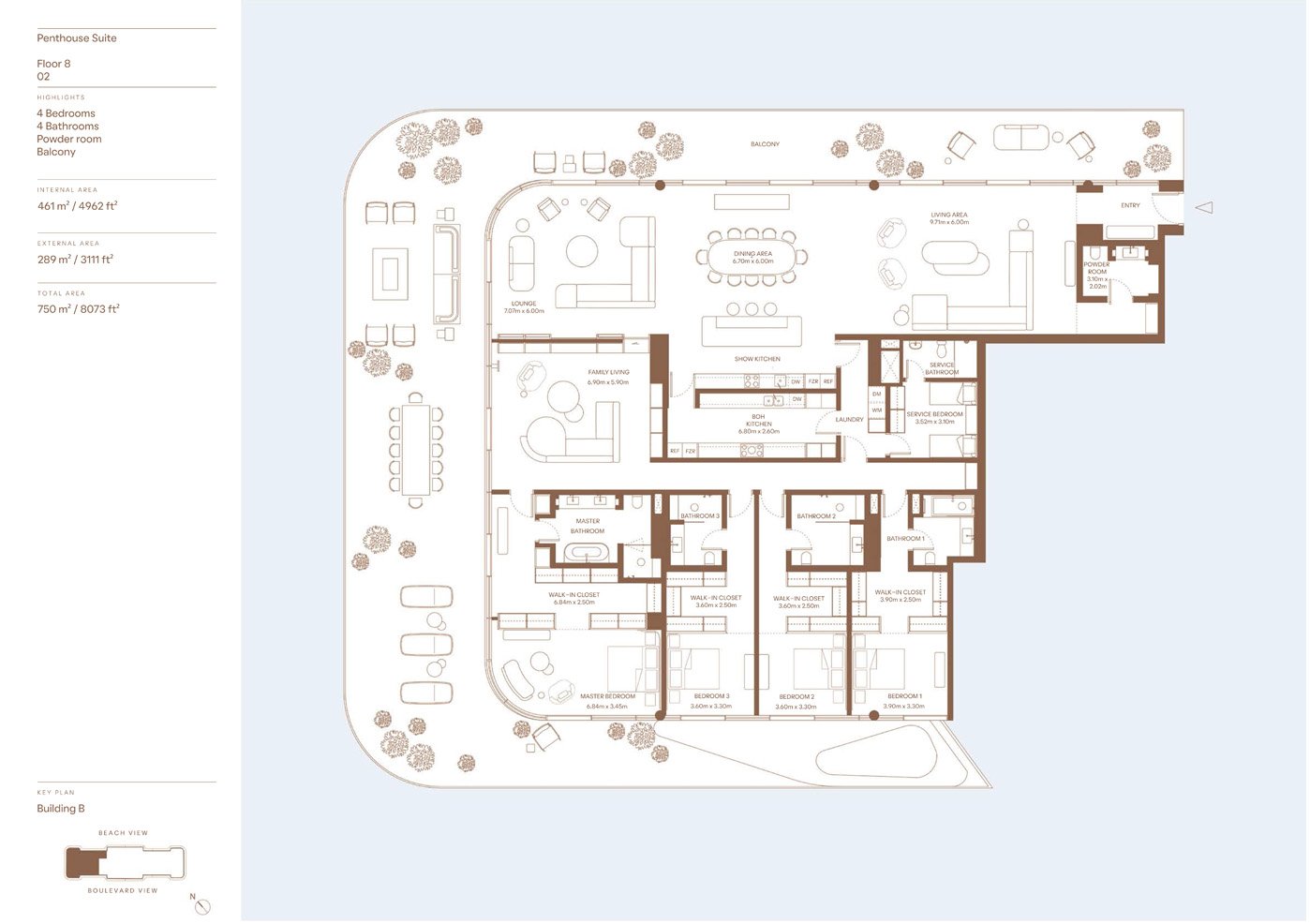 Penthouse Sizes8,073 to 8,224 sq. ft.